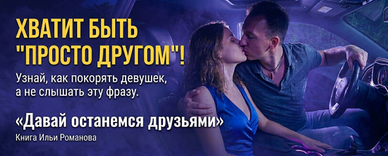 Книга Ильи Романова "Давай останемся друзьями" расскажет, почему девушки говорят мужчинам, что они могут быть только друзьями! Хочешь, чтобы тебя никогда не отправляли "в друзья"? Максимально подробно изучи эту книгу и действуй по ней! После прочтения этой книги любая красотка захочет быть с тобой!